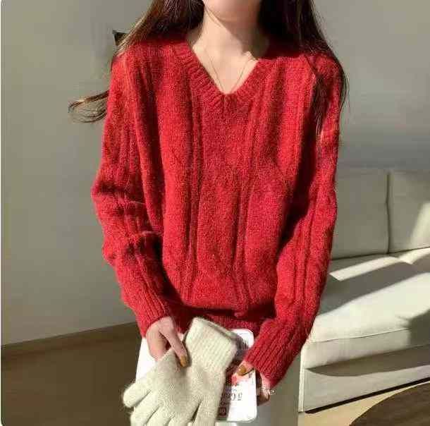 秋冬新款新年红北极绒提花套头毛衣,独立包装,图片款,均码面料软糯厚实,...
