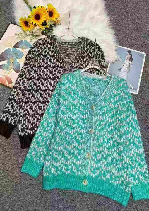 秋冬新款法式复古小香风重工编织宽松百搭慵懒风大板提花毛衣开衫,独立包装...