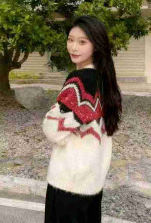 秋冬新款宽松撞色加厚款港风设计款毛衣开衫外套,独立包装,均码面料软糯厚...