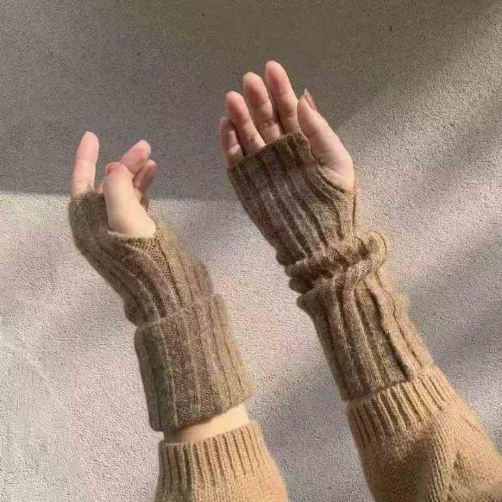 高颜值秋冬户外骑行保暖漏指长手套可爱百搭半指针织手套,独立包装,1000双...