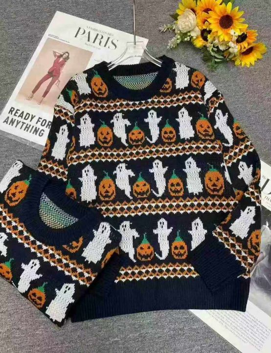 秋冬新款宽松慵懒风百搭卡通提花包芯纱加厚圆领套头毛衣,独立包装,均码面...