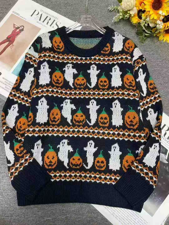 秋冬新款宽松慵懒风男女同款提花套头毛衣,独立包装,均码面料软糯舒适弹力...
