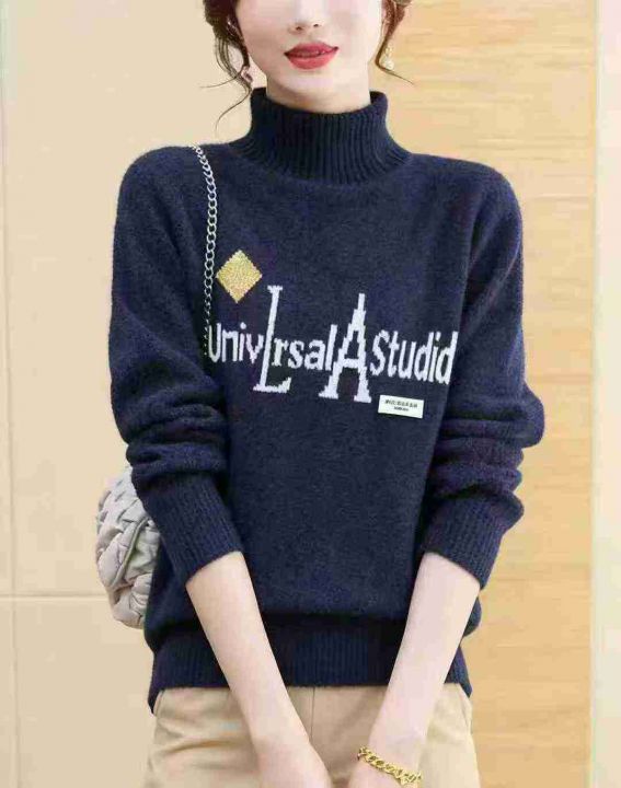品牌剪标 独立包装,提花字母熊仔黑色流行时尚二毛条苞芯纱毛衣中长款宽松...