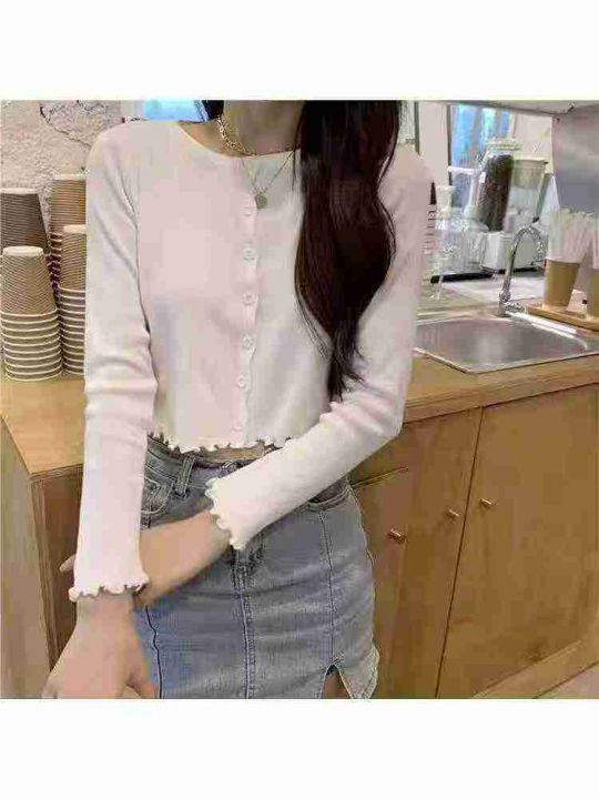 秋季新品设计款V领木耳边针织毛衣开衫,独立包装,均码面料柔软舒适弹力大...