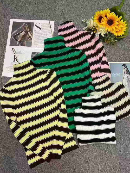 冬季新款堆堆领撞色条纹针织套头毛衣,独立包装,均码面料软糯厚实弹力大,...