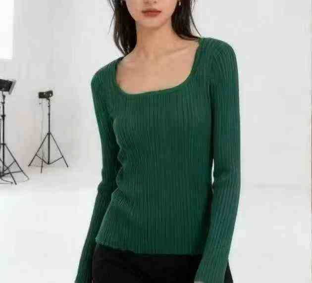 秋冬新款网红爆款方领木耳边开叉针织套头毛衣,独立包装,均码面料柔软舒适...