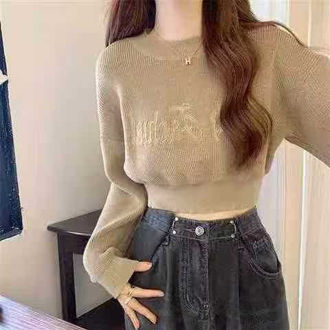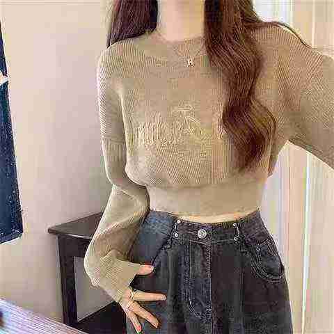 秋冬新款辣妹纯欲风短款刺绣针织套头毛衣,独立包装,均码面料柔软舒适,23...