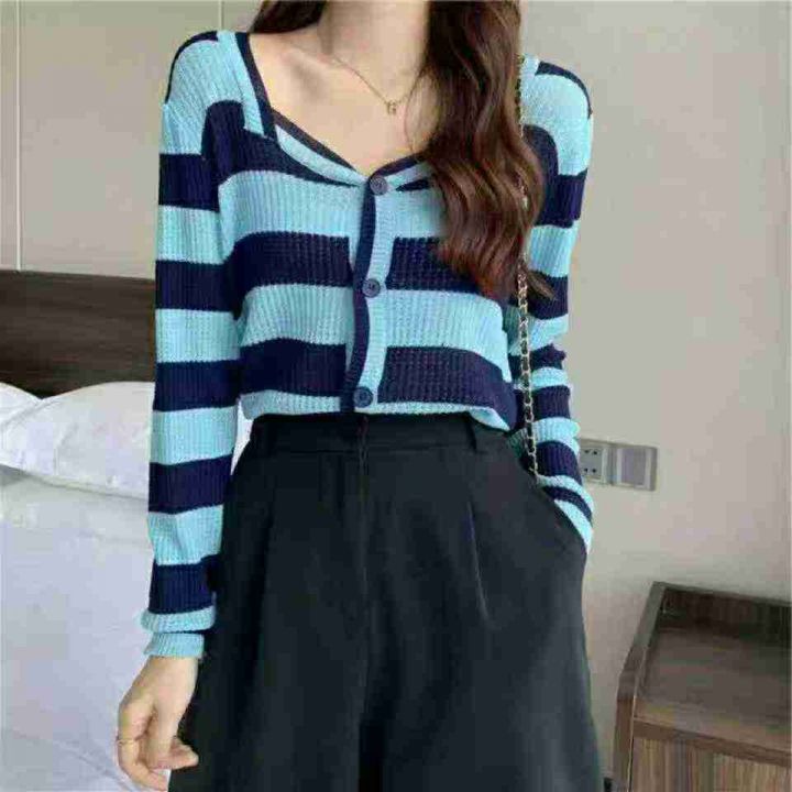 秋冬新款韩系撞色条纹高级感针织毛衣开衫,独立包装均码面料软糯舒适弹力大...
