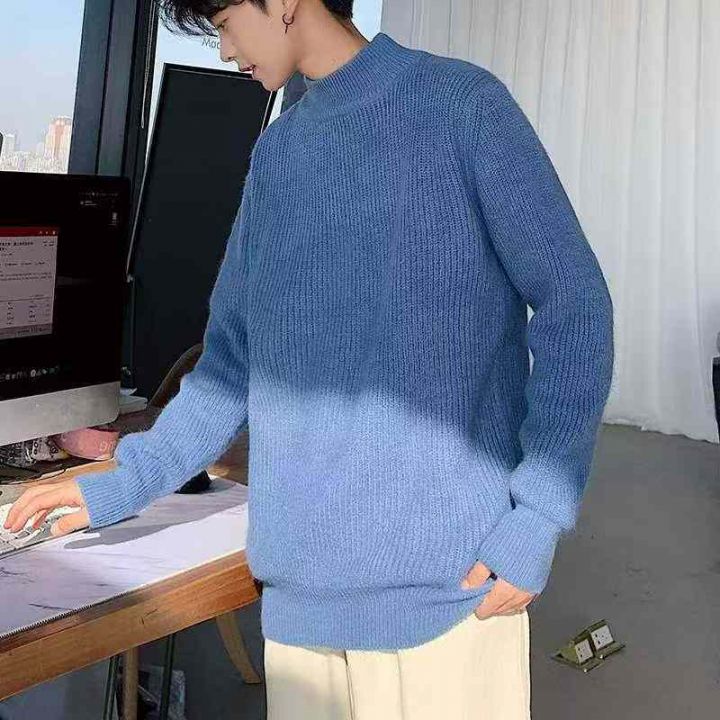 大版型厚重高档半高领条纹提花毛衣男女同款秋冬时尚休闲套头毛衣,独立包装...