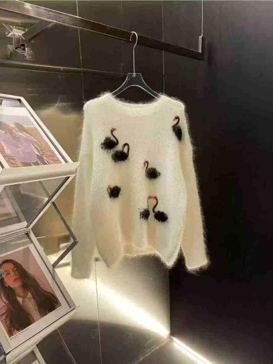 全清12.8,欧洲镶钻提花天鹅马海毛减龄漂亮毛衣2025新款爆款设计...
