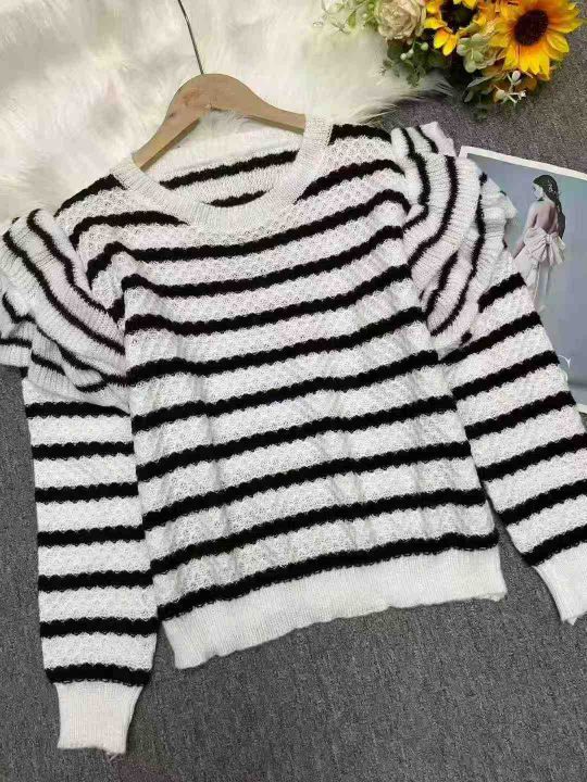 秋冬新款宽松慵懒风撞色条纹小香风套头糯米毛衣,独立包装,均码面料软糯舒...