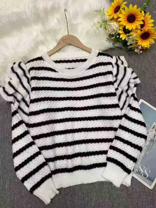 秋冬新款宽松慵懒风撞色条纹小香风套头糯米毛衣,独立包装,均码面料软糯舒...
