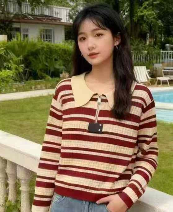 早秋新款韩系纯欲风辣妹条纹修身显瘦针织套头毛衣,独立包装,均码面料软糯...