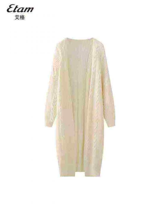 全清16.8,艾格纯色麻花中长款毛衣外套女秋季加厚慵懒风宽松显瘦...