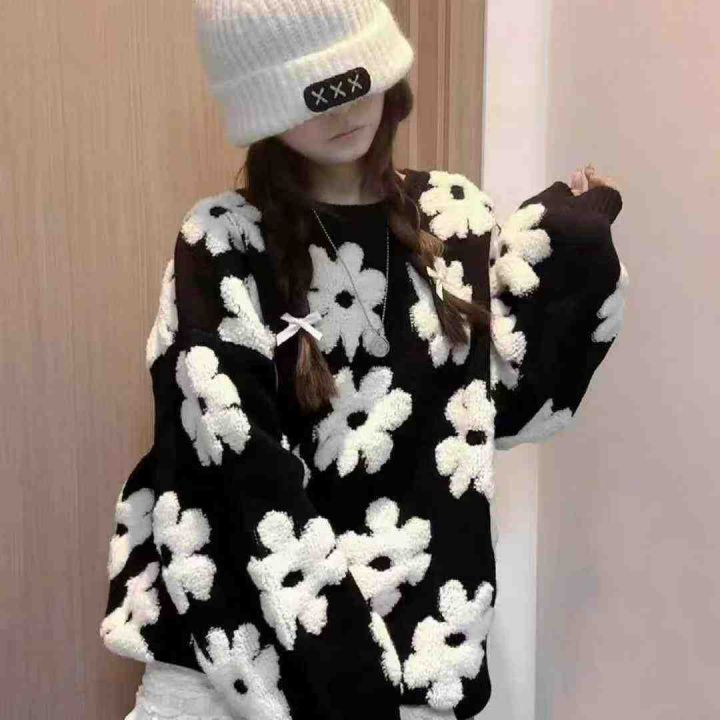 韩系气质chic风秋季女新款花朵圆领慵懒风毛衣,独立包装,均码,135件,清8...