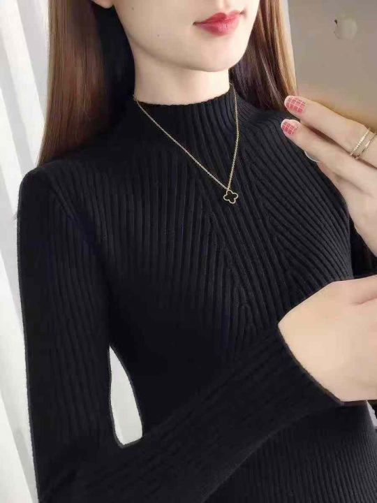 秋冬新款半高领高弹力修身显瘦包芯纱套头毛衣,独立包装,均码面料软糯舒适...