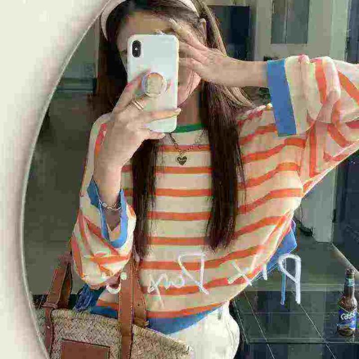 5.9元清2025年爆款条纹撞色韩系抽绳宽松针织上衣防晒衣,单款3色,均码宽松...