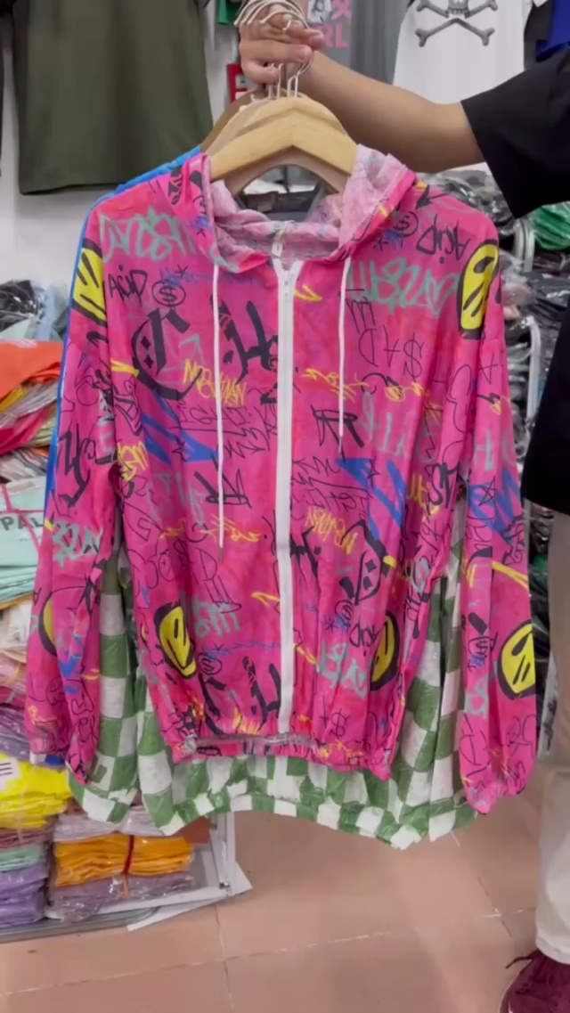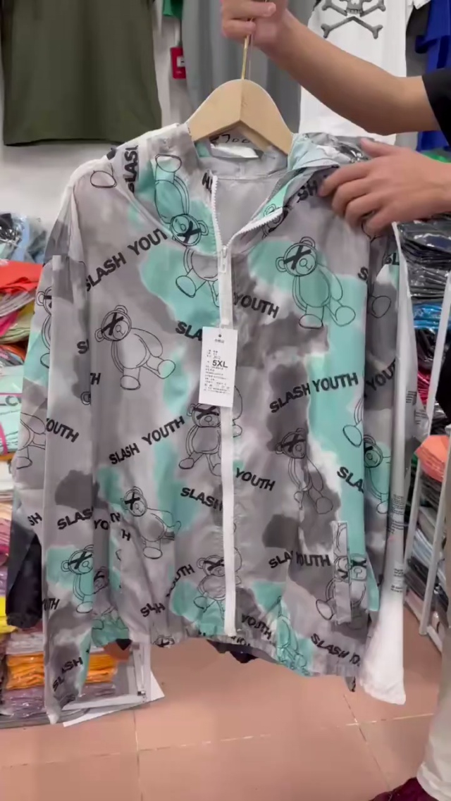 5.9清工厂回收5243件纯棉多巴胺开衫连帽轻薄防晒衣外套,码数均码穿80-130...