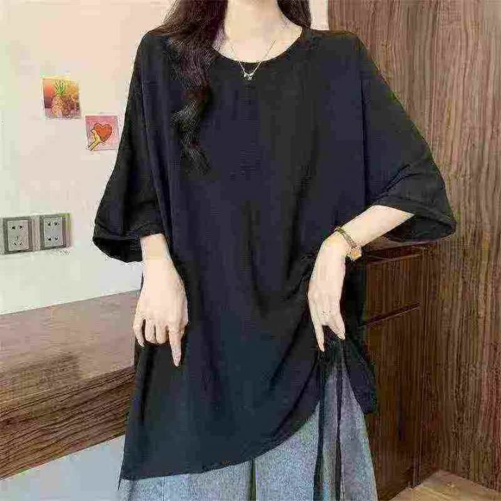 网红开衩不规则中长款中袖抽绳防晒衣t恤女夏洋气时髦防晒上衣潮,数量500左...