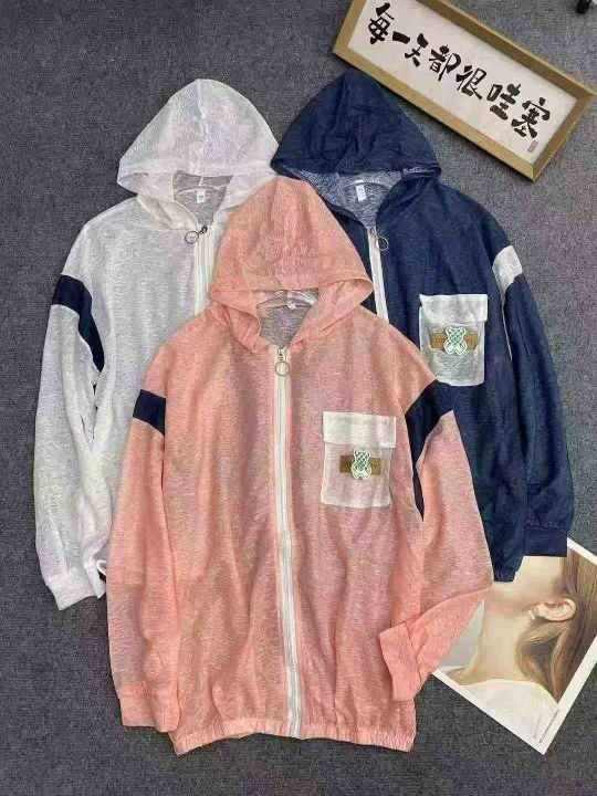 5.9清工厂回收5243件纯棉多巴胺开衫连帽轻薄防晒衣外套,码数均码穿80-130...