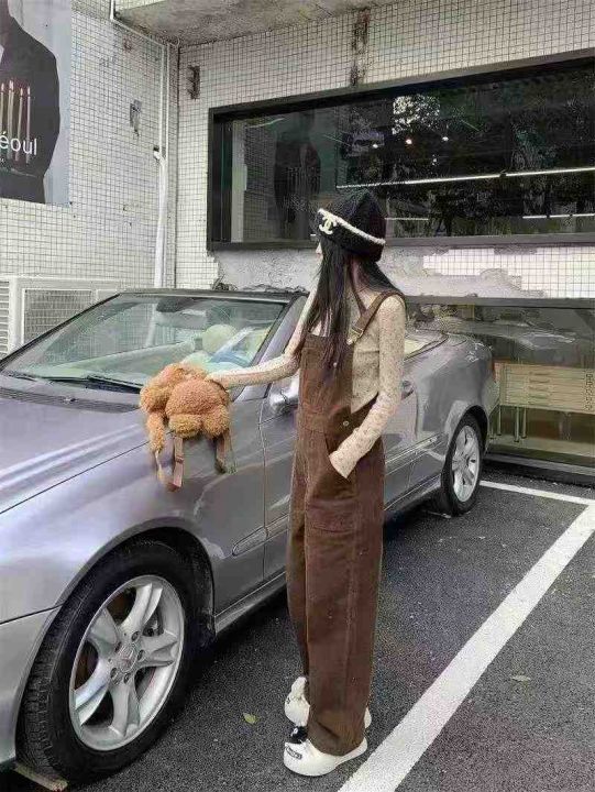 美式复古学院风灯芯绒显瘦阔腿裤新款百搭连体背带裤潮,独立包装,S一2XL码...