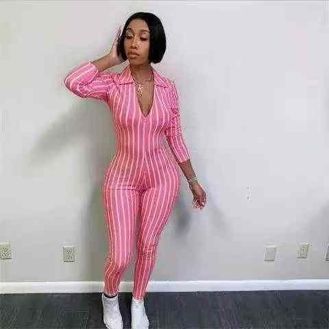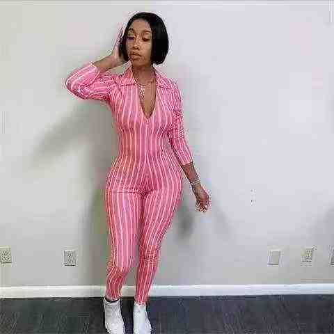 5.5清款号:DN8192欧美性感时尚简约条纹PoLo翻领连体裤 ,数量:600件左右...