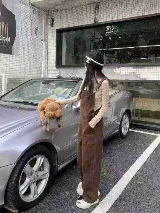 美式复古学院风灯芯绒显瘦阔腿裤新款百搭连体背带裤潮,独立包装,S一2XL码...
