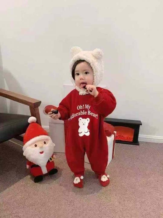 ️婴儿新年爬服,新款男女宝宝加绒加厚喜庆萌红色拜年服连体爬服,独立包装...
