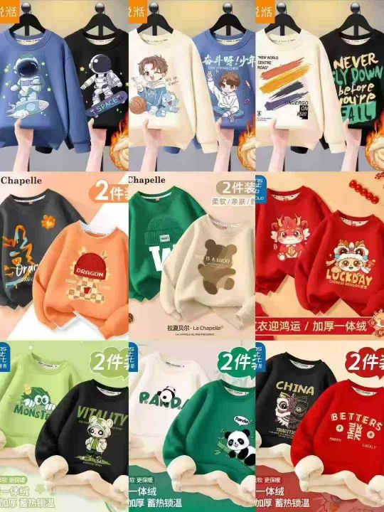 清仓处理4.9870件男女中大童秋冬圆领加绒卫衣 单款多色,内里加婴儿绒,110...