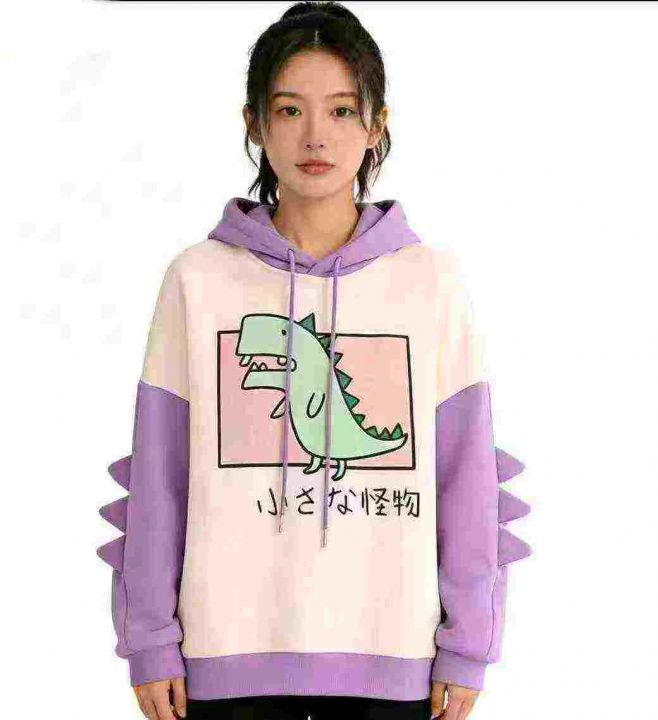 5.8清电商仓回收664件韩系学院风小恐龙设计感加绒靓妹连帽卫衣,码数S-XL。...