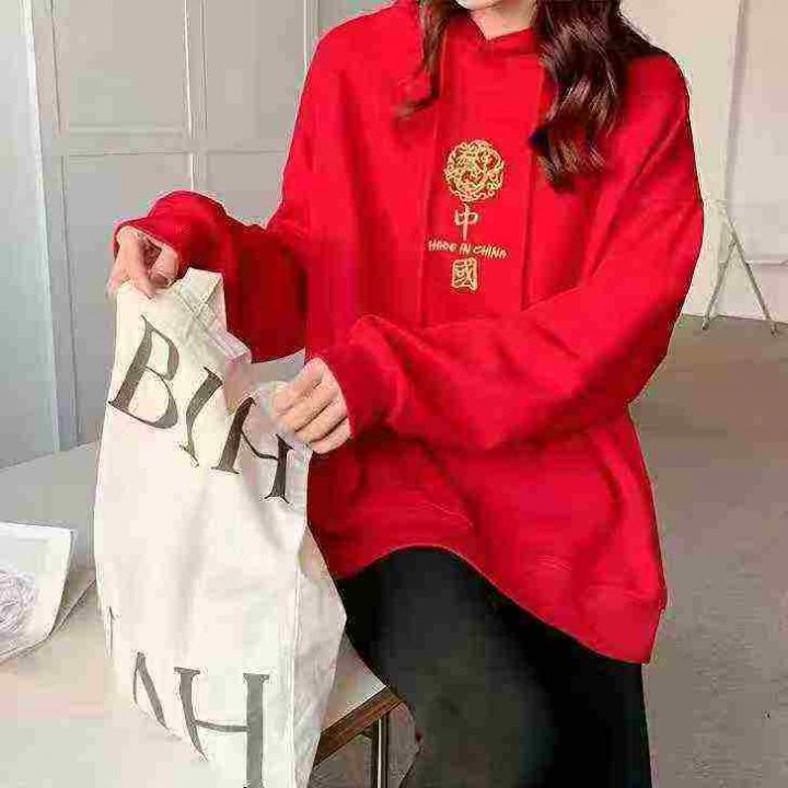 红色双层连帽卫衣宽松秋冬国潮外套中国风卫衣女学院风春秋款,数量220件,...