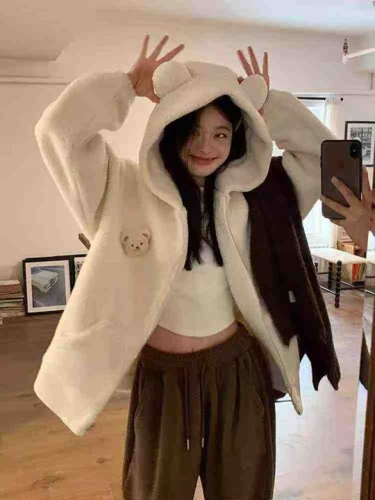 15.8清电商仓回收687件日系冬季新款学院风撞色羊羔毛内里加婴儿绒绒加厚外...