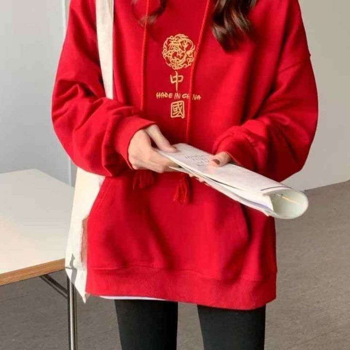 红色双层连帽卫衣宽松秋冬国潮外套中国风卫衣女学院风春秋款,数量220件,...
