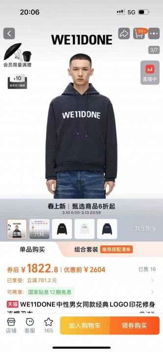 全清5.8元天猫在售款195件左右高品质春秋靓妹款棉质bf宽松连帽短款开衫卫衣...