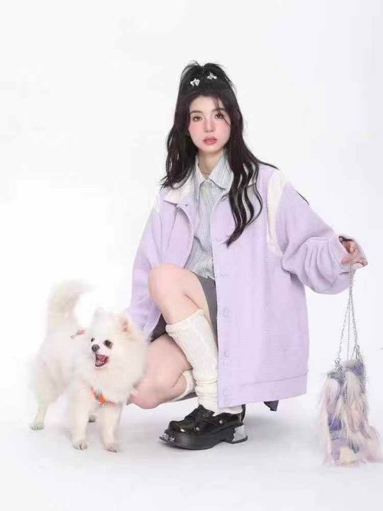 [月亮]:8.8清158件(不分货)[月亮]:香芋紫棒球服华夫格撞色外套[月亮]:...