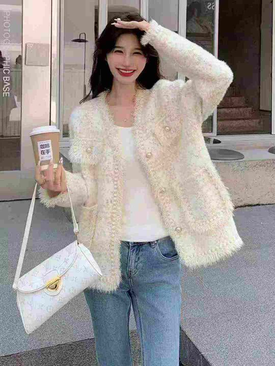 全清24.9,秋冬设计感精致小香风外套女秋季2025新款法式宽松富家名媛防水貂...