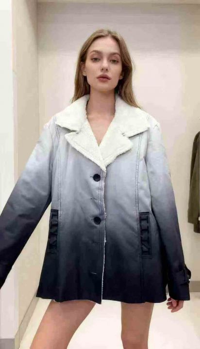 羊羔绒立领外套416件12.8,撞色设计,有口袋,码数M-2XL,独立包装,模特图...