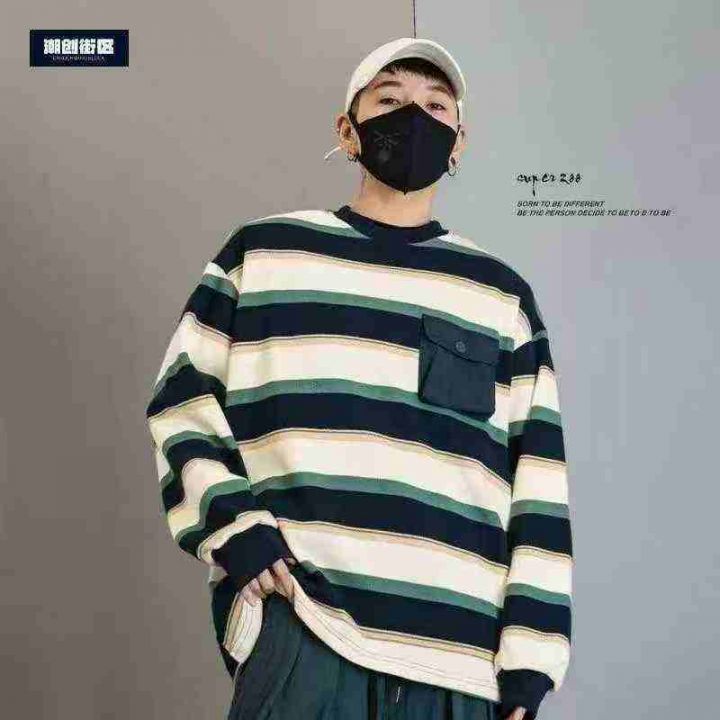 195件,美式潮牌重磅小口袋条纹圆领卫衣日常休闲外套男,独立拉链包装,码...