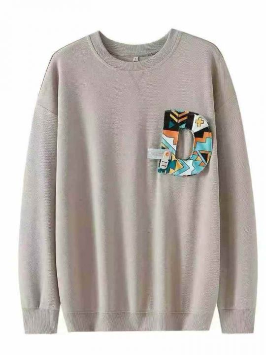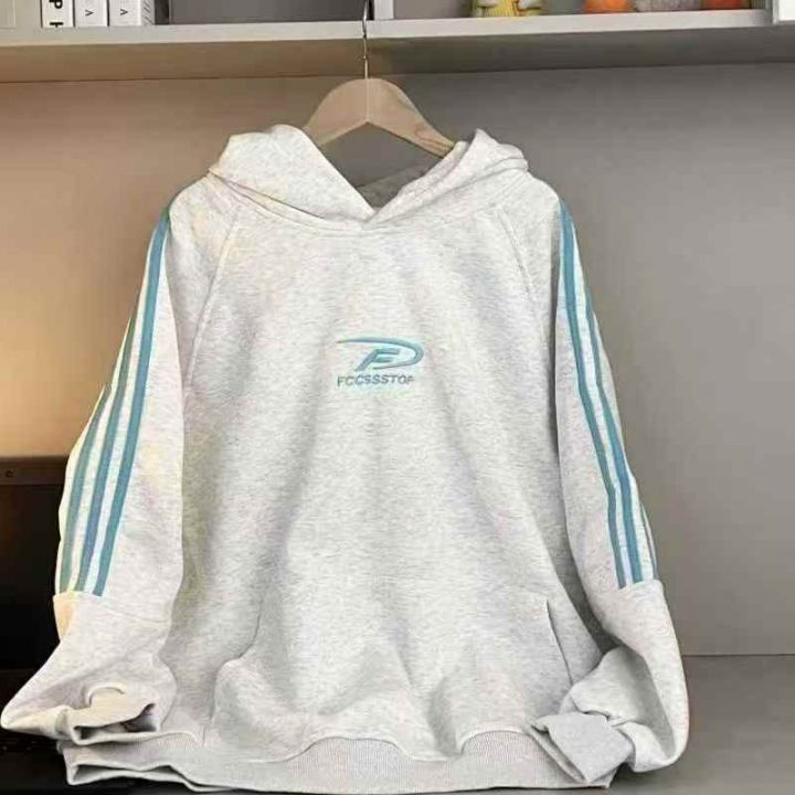 大码潮牌没计感大版型宽松痞帅鱼鳞布印花条纹卫衣,285件,M-2XL,后领包边...