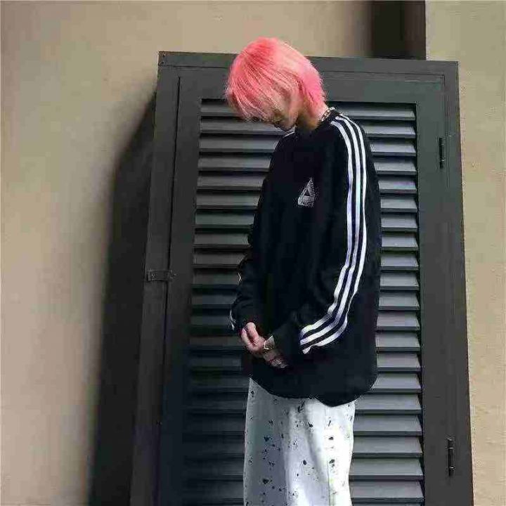 大码潮牌没计感大版型宽松痞帅鱼鳞布印花条纹卫衣,285件,M-2XL,后领包边...