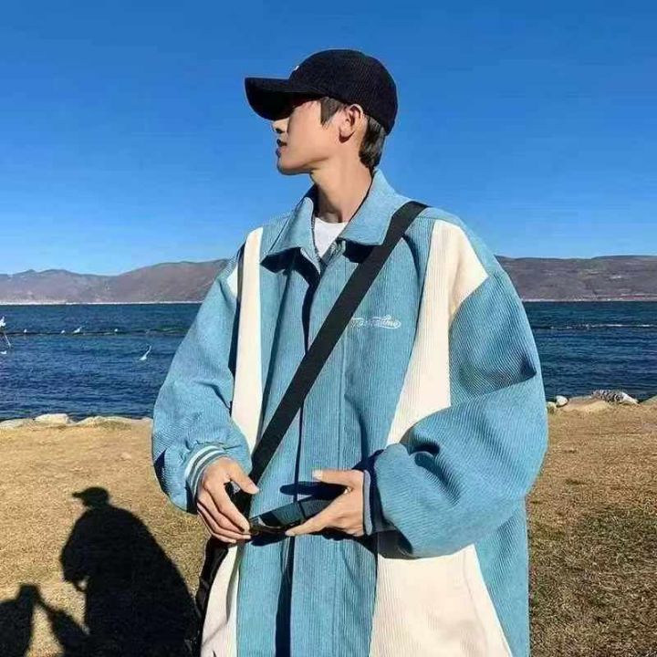 灯芯绒外套男春秋季美式vintage潮牌复古宽松拼接撞色翻领夹克衫,独立包装...