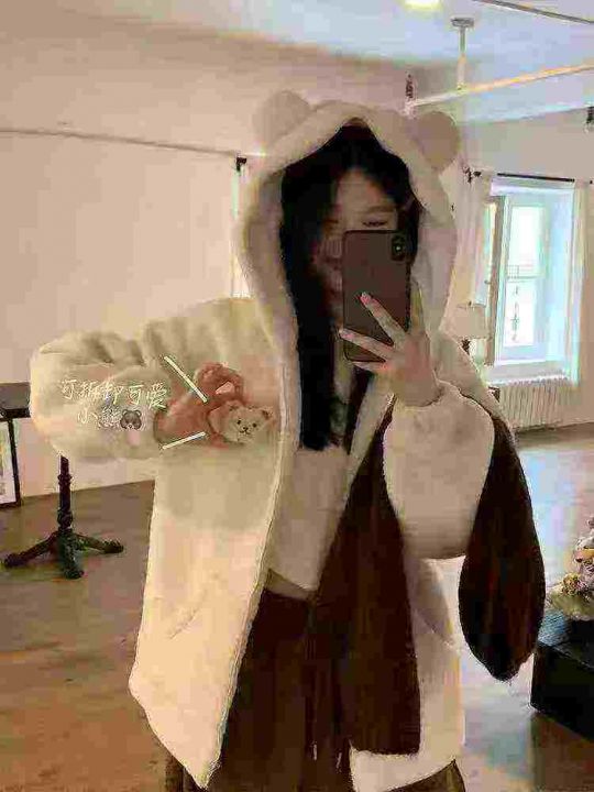 15.8清电商仓回收687件日系冬季新款学院风撞色羊羔毛内里加婴儿绒绒加厚外...
