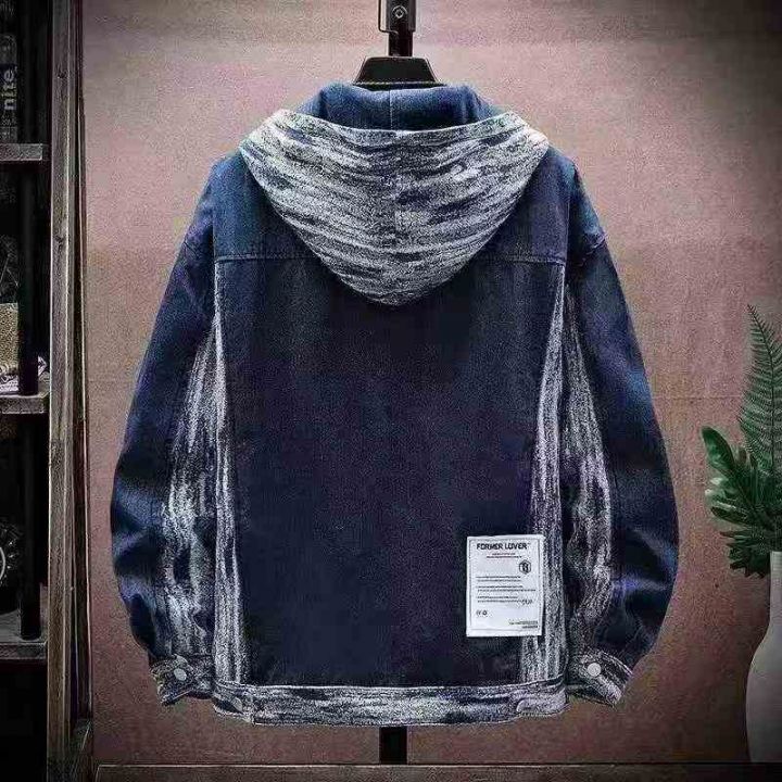 美式复古连帽牛仔外套男潮牌ins宽松百搭夹克韩版潮流假两件外套200件,独立...