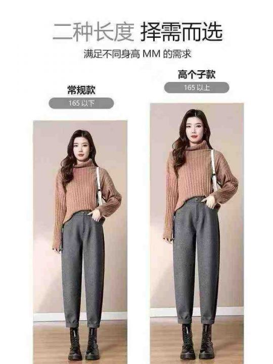 秋冬小脚毛呢裤设计烟管女磨毛英伦高腰显瘦休闲西装裤,独立包装,S,M,L...