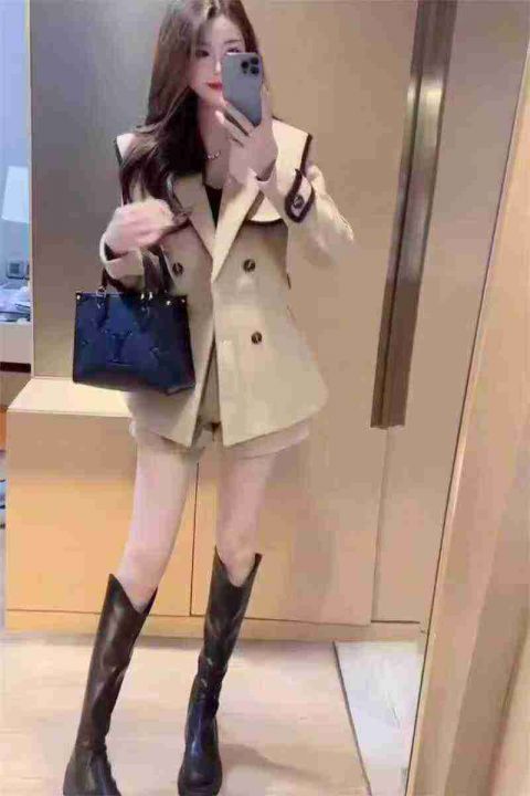 8.9清电商仓回收262件秋季新款名媛风气质百搭高级感显瘦拼接西装毛呢外套,...