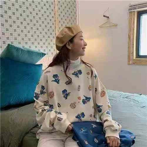 棉质秋季宽松卫衣60件7.9,小恐龙印花,面料小毛圈,码数S-XL,独立包装带...