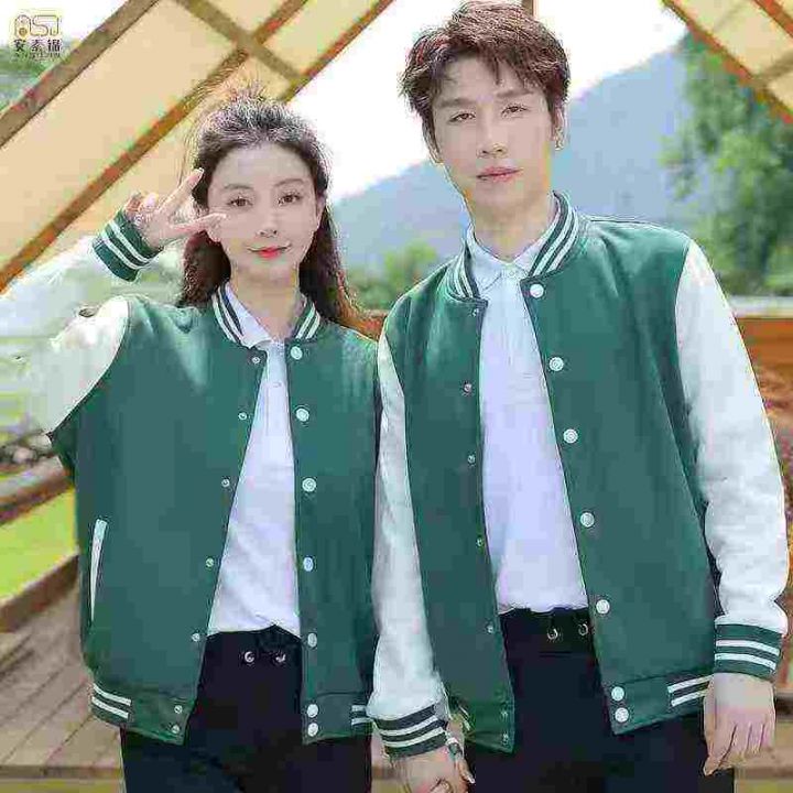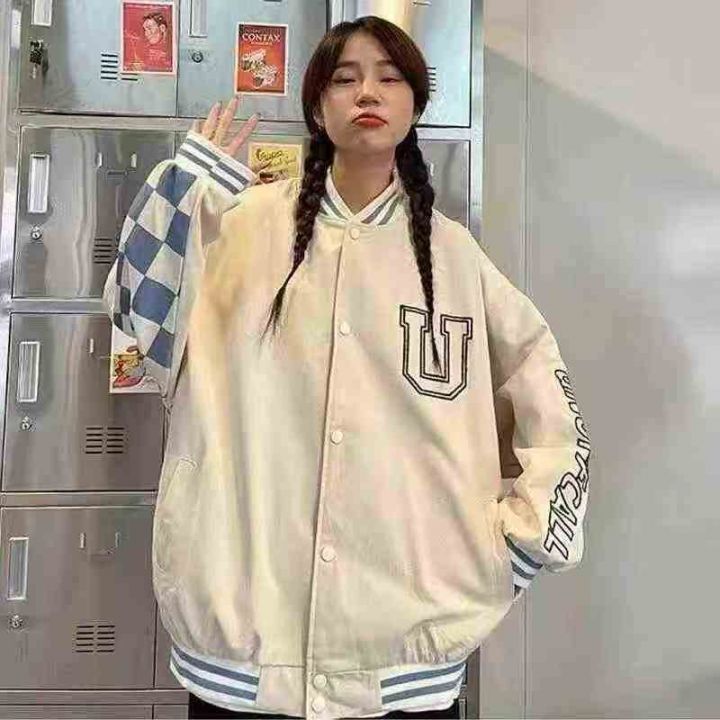 全清15.8男女同款棒球服外套夹克,大版型宽松版U字母图案棋盘格式外套,带...
