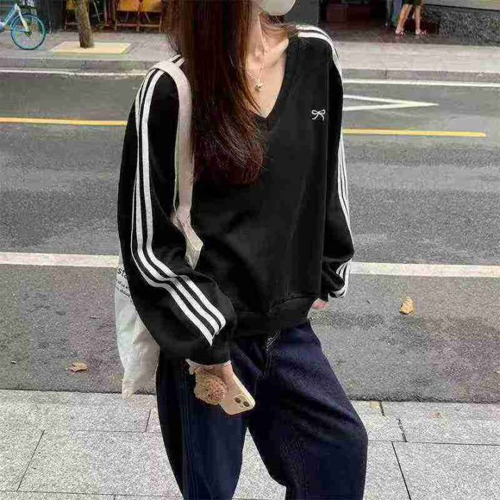 [發]蝴蝶结刺绣V领卫衣160件左右独立包装 码数1到4条纹撞色宽松设计休闲版...