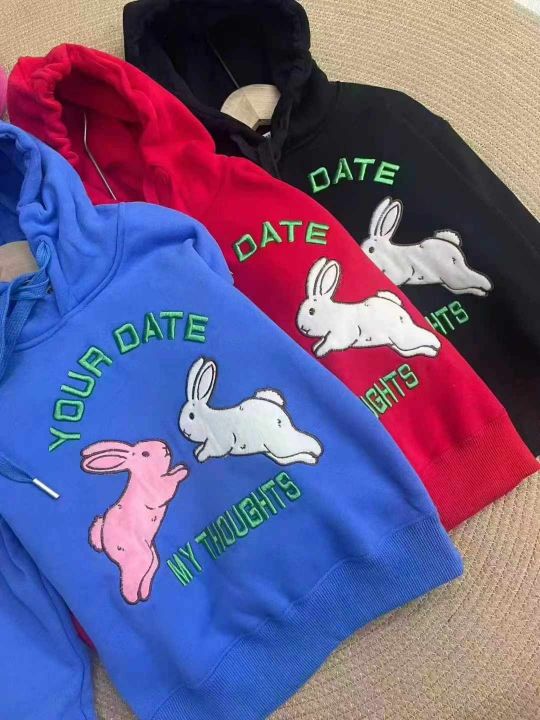 亏本清仓,不议价1869件高品质兔子刺绣连帽加绒儿童卫衣。双层连帽设计,后...