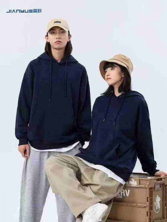☕️美式重磅纯色加绒连帽卫衣男女秋冬宽松加绒情侣纯色帽衫潮1200件全清13...